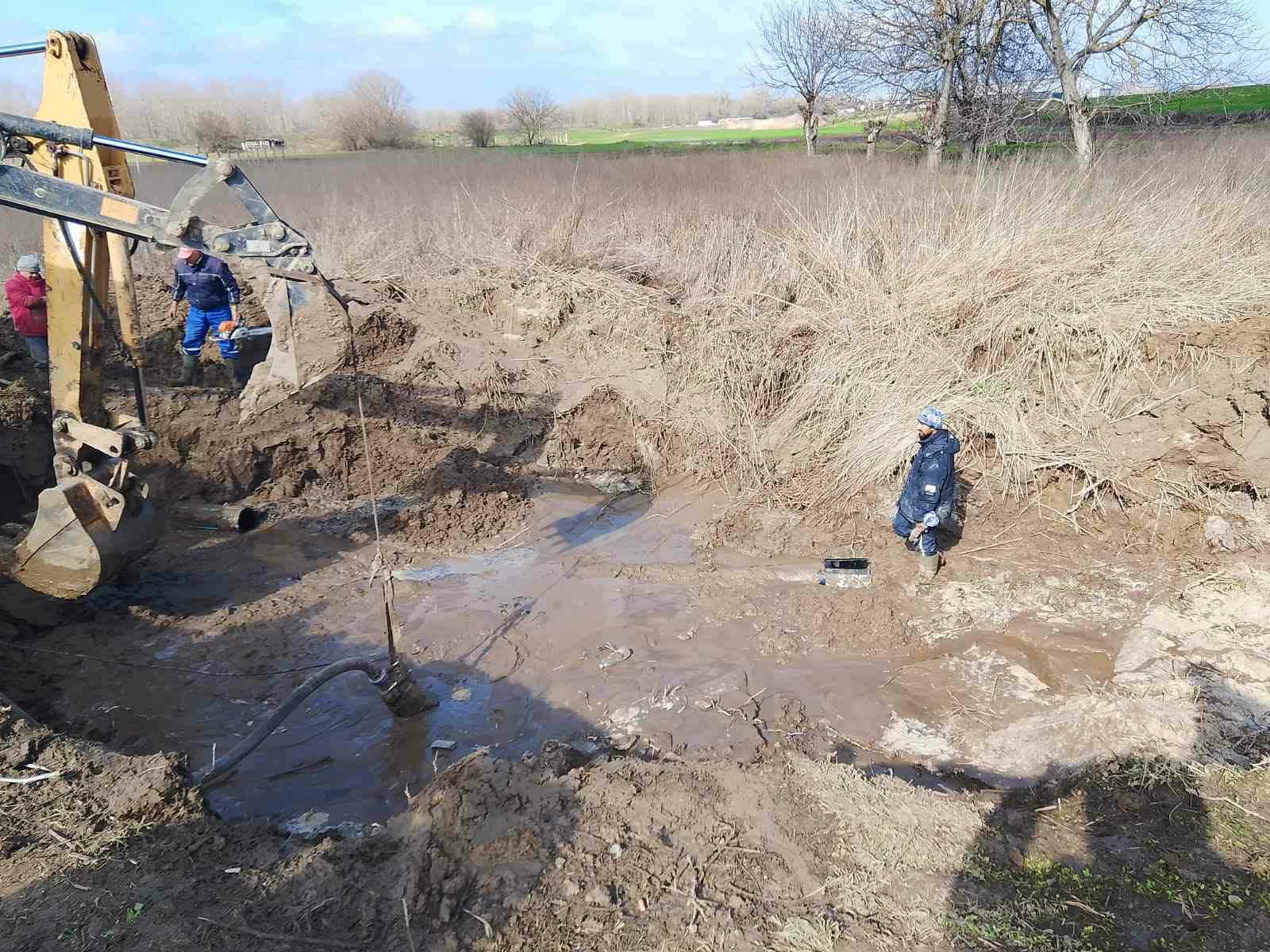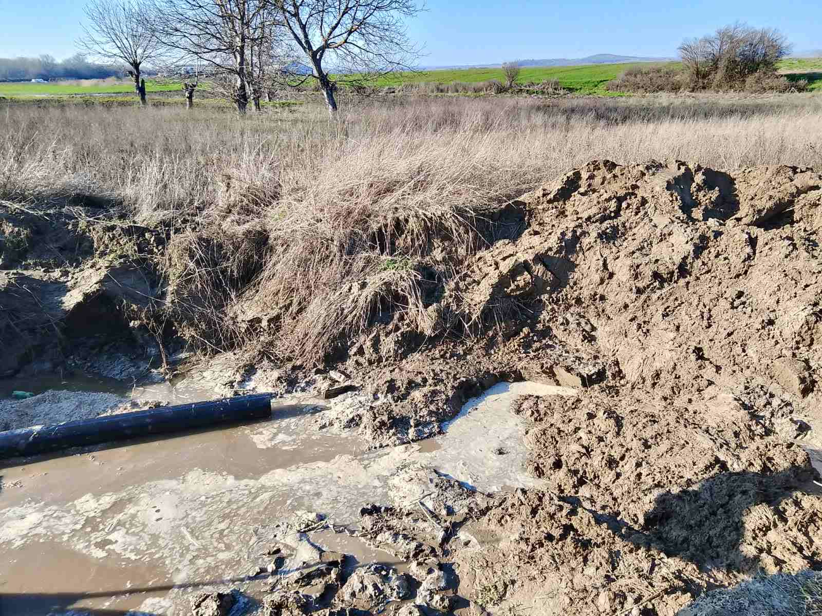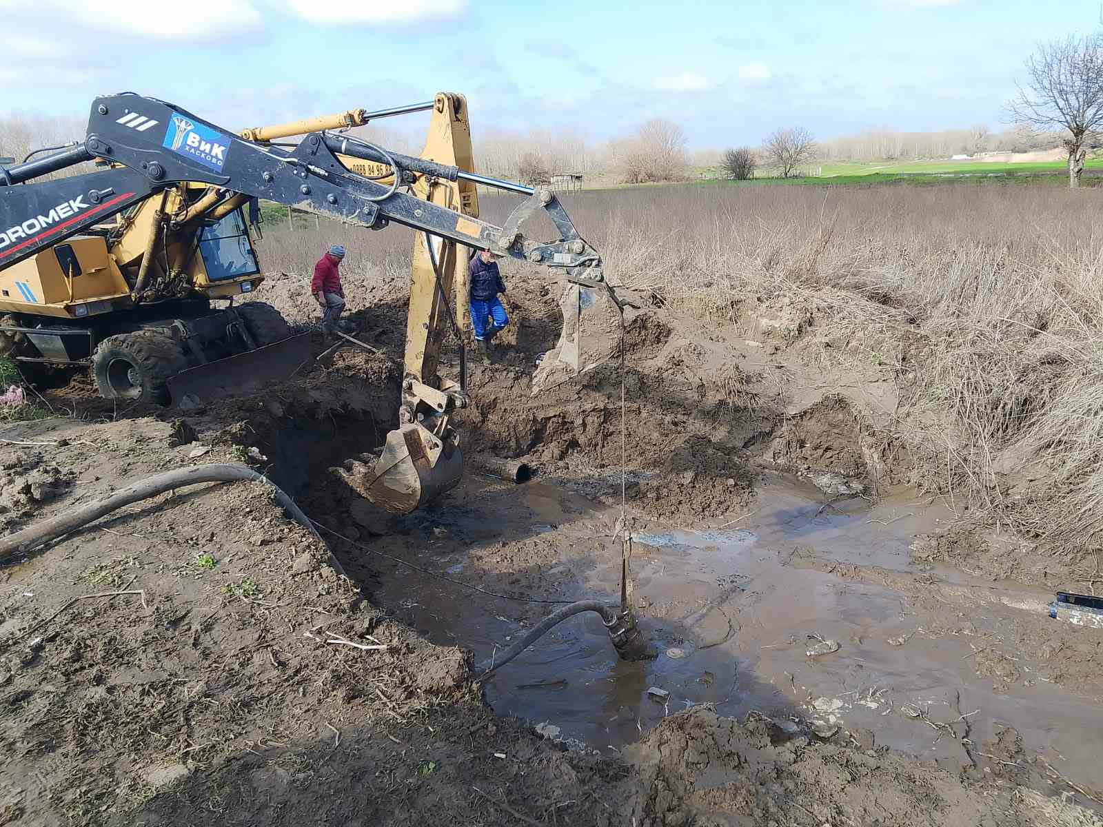 Аварията на водопровода е в силно наводнен терен. Придошлата вода над спуканата тръба надвишава 1м., и във връзка с това правим уточнението, че изпомпваната вода се връща отново към мястото на аварията. Наложи се на мястото да бъдат изпратени помпи за мръсна вода от пречиствателните станции за отпадни води от Хасково и Димитровград, които да могат да източат образувалата се кал. Меката земна маса се свлича многократно в изкопа и това допринася за сложността при работа на екипите.